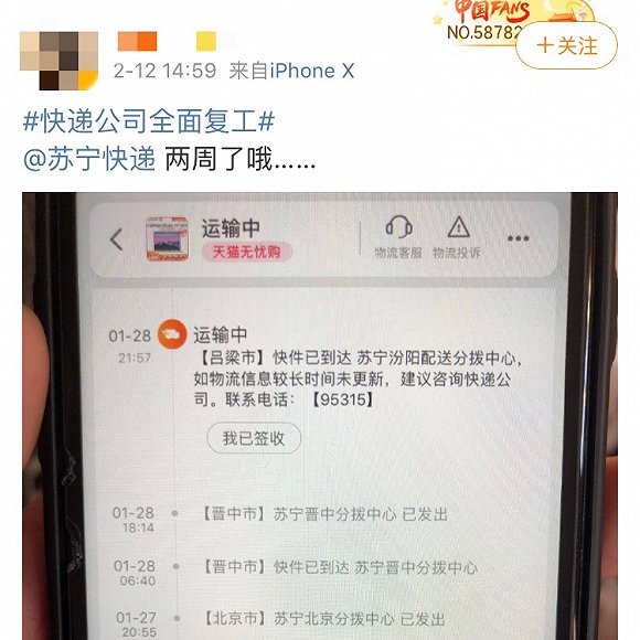 童渊快递(600233。上海)在界面上告诉记者,“目前,除了疫情控制区,其他网点正在陆续恢复工作,但外部数据暂时还没有更新。”
