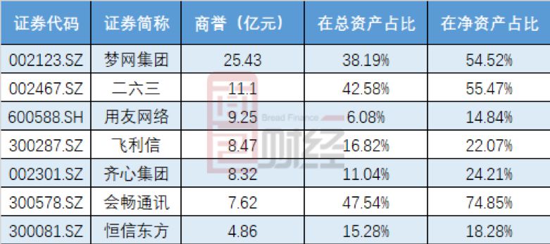 此外,用友网、启新集团、飞利信的账面商誉超过8亿元,恒信东方的商誉约为4.86亿元。