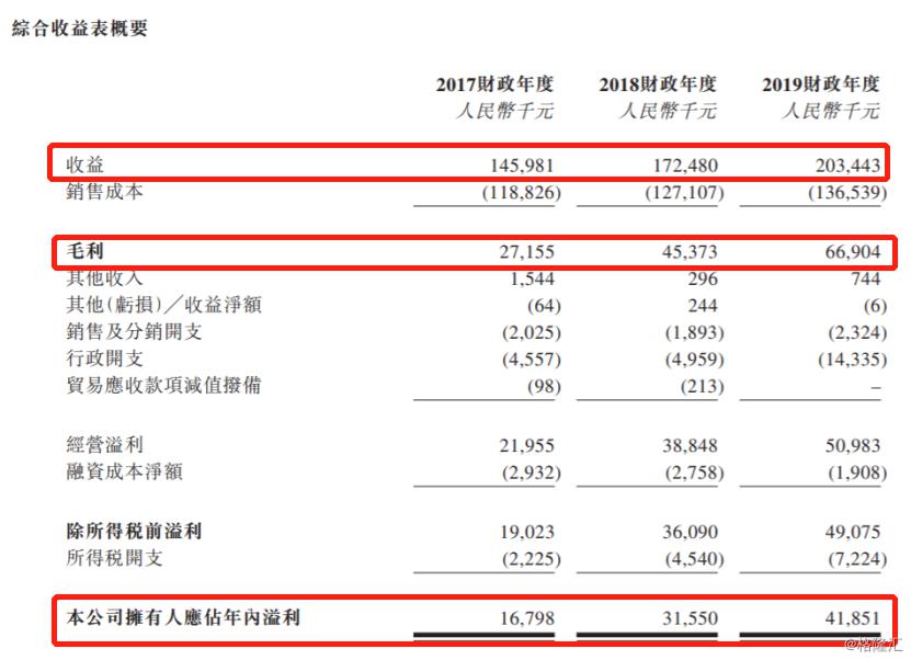 截至2019年12月31日止的三年中,每一年的毛利分别约为人民币2716万元、人民币4537万元和人民币6690万元,同期的毛利率分别为18.6%、26.3%和32.9%。