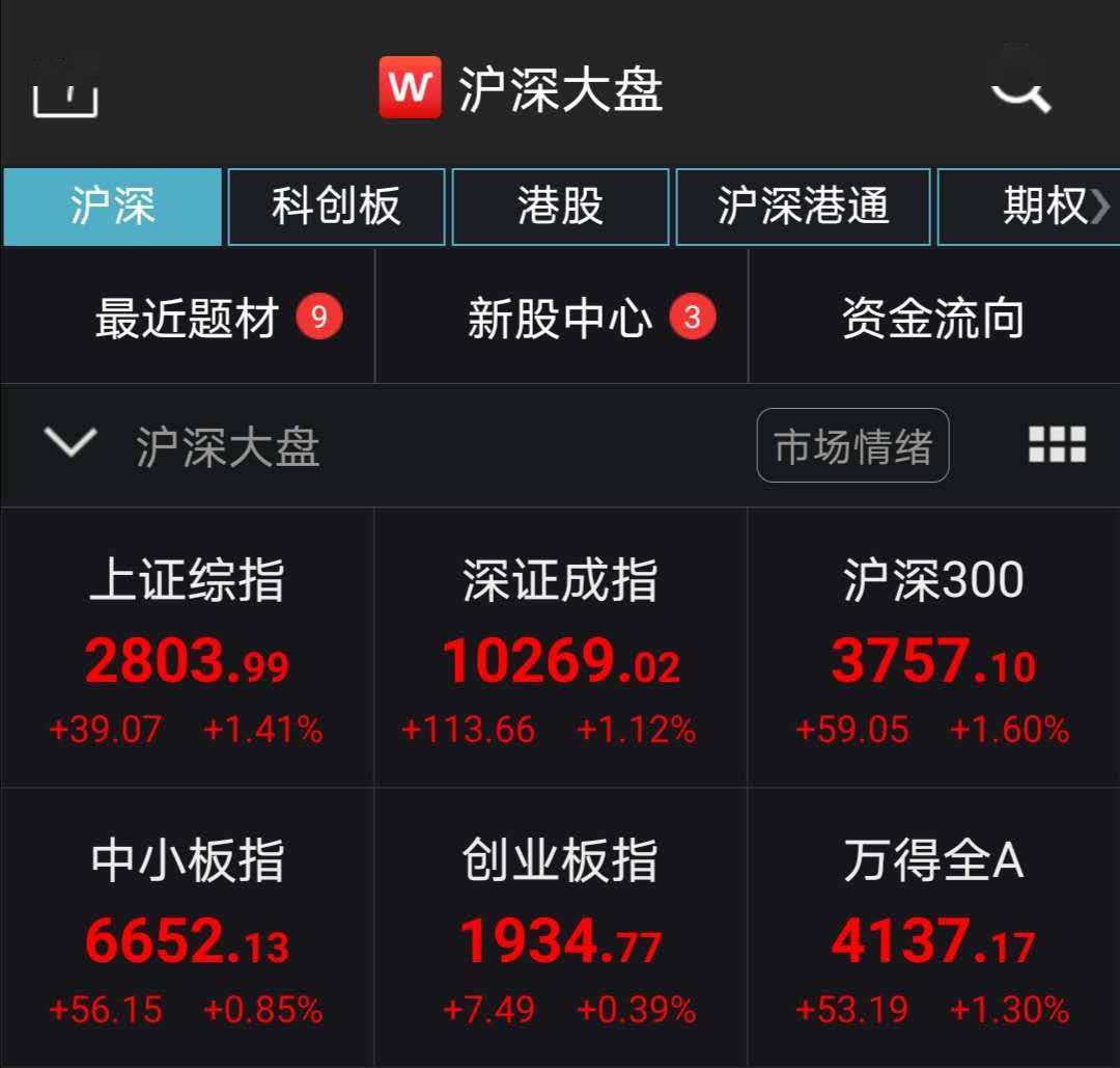 沪指涨1 41%收复2800点 水利基建题材领涨|板块|基建|融资余额