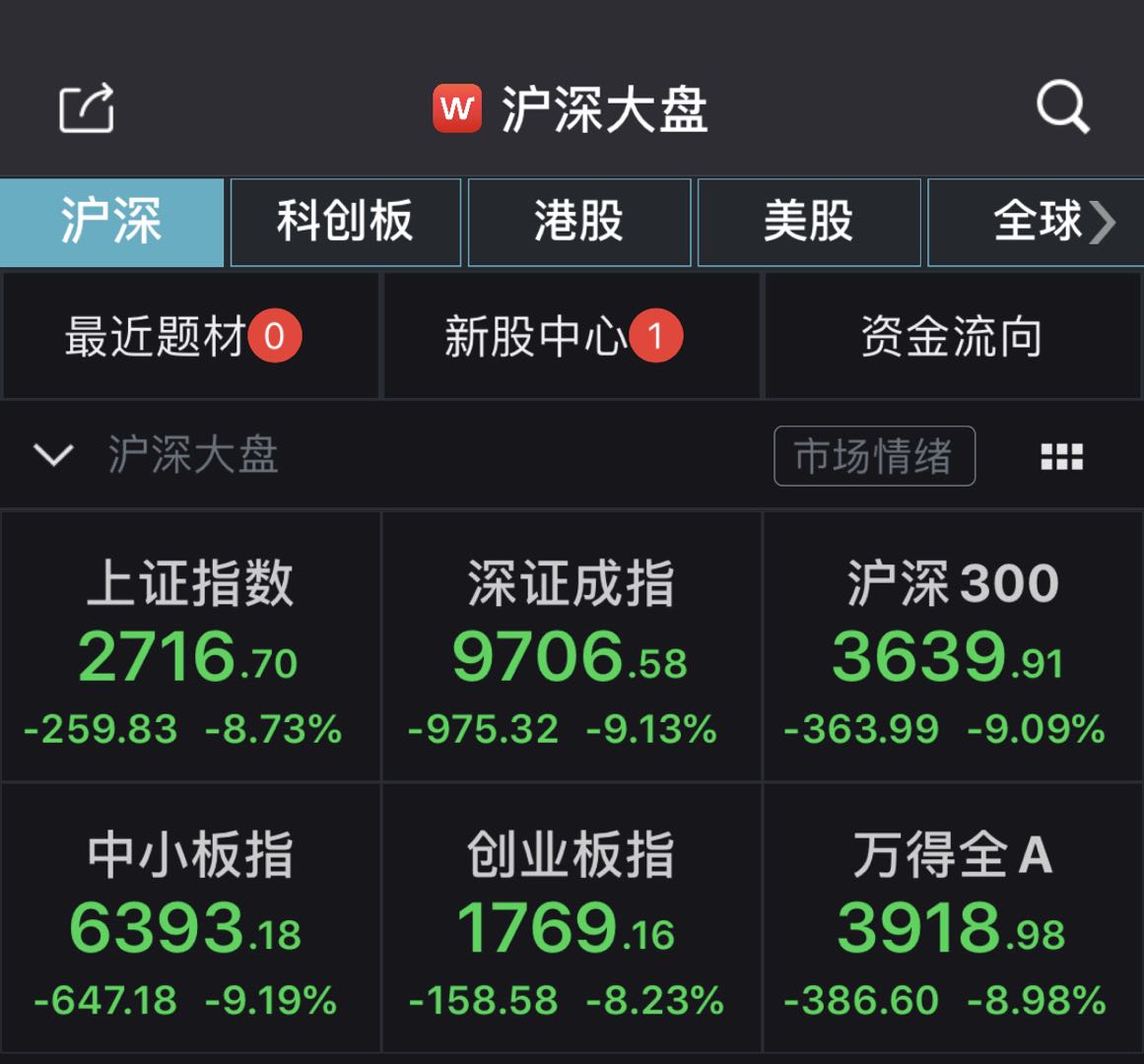 开盘:沪指跌8 73%创业板指跌8 23% 两市近3000只股票跌停|股票|市场|概率